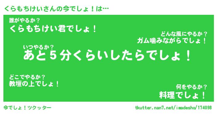 | ヘコむあだ名 | 『くらもー』『なまこ酢』『くらお』 |