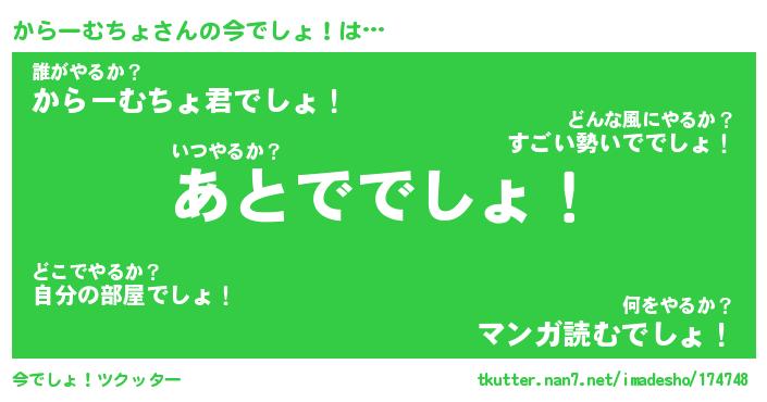 | ツイッター | からーむちょさんのツイッターID『dendenmushi_kun』 |