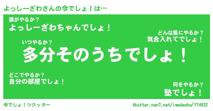 | 男性向けラノベタイトル風あだ名 | 『よっしーざわの憂鬱』 |