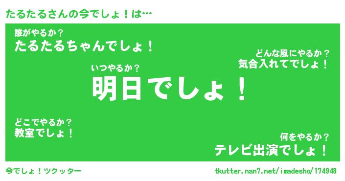 | ヘコむあだ名 | 『たるもー』『酢こんぶ』『たるっ子』 |
