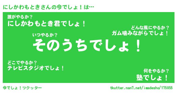 | 胡散臭い通販商品みたいなあだ名 | 『必ず成功する霊験あらたかなお札…その名も「にしかわもとき」』 |