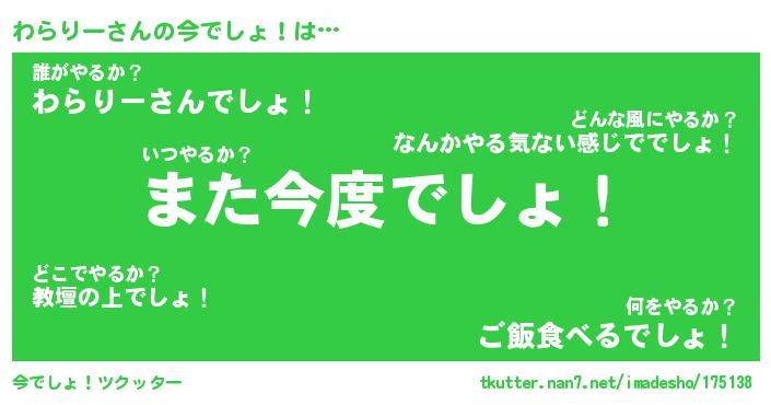 | 胡散臭い通販商品みたいなあだ名 | 『億万長者になれる霊験あらたかなお札…その名も「わらりー」』 |