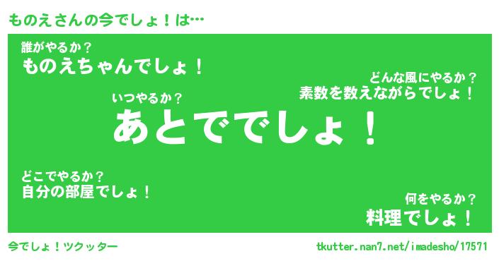 | 料理風あだ名 | 『節約★ものえと油揚げの玉子丼』 |