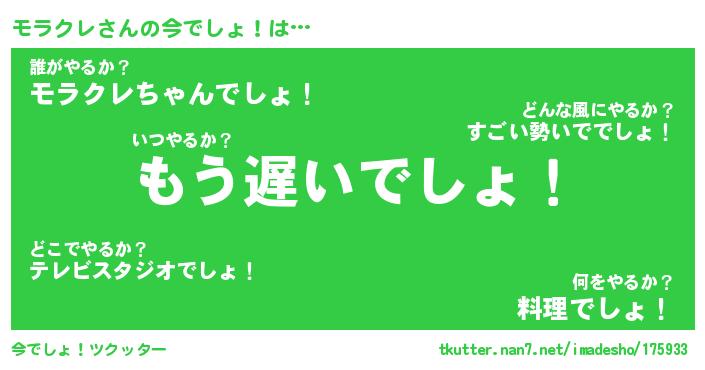 | 意味不明あだ名 | 『ペロリンモラクレ』『永久保存モラクレ』 |