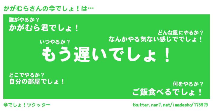 | ヘコむあだ名 | 『かがにー』『なまこ酢』『かが太郎』 |