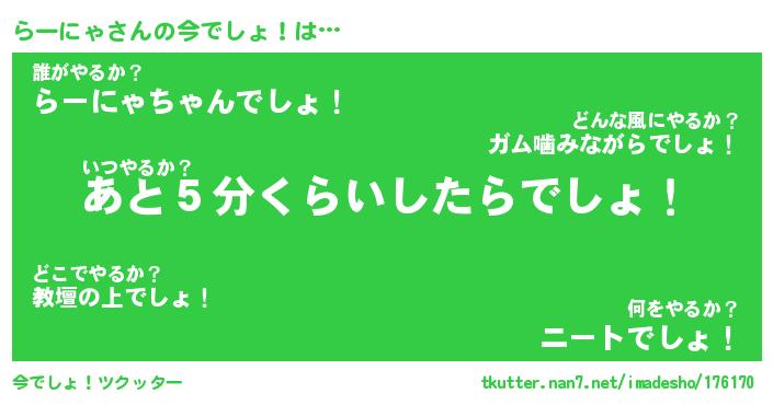 | ツイッター | らーにゃさんのツイッターID『namakemono_man』 |