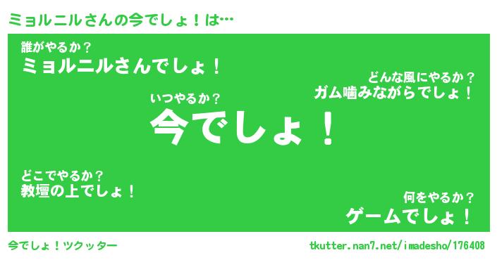 | ヒーロー風カッコイイあだ名 | 『スーパーミョルニル』『黄金騎士ミョ』 |