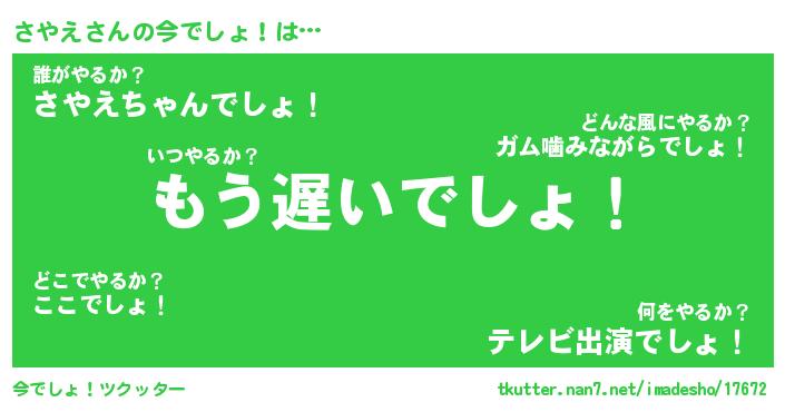 | 意味不明あだ名 | 『ペロリンさやえ』『さやえフォーエバー』 |