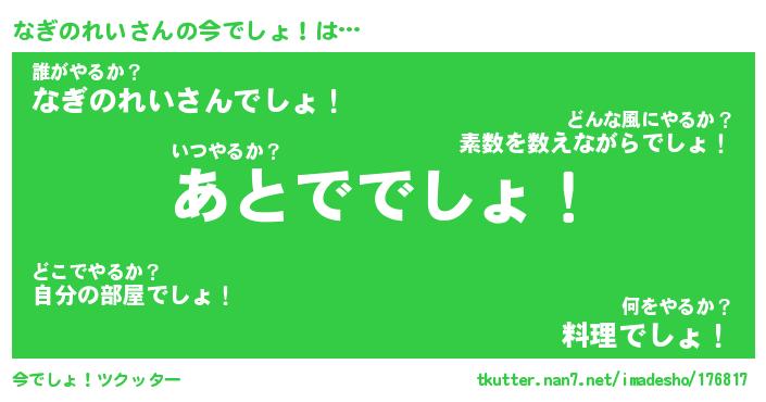 | 料理風あだ名 | 『節約★なぎのれいと油揚げの玉子丼』 |