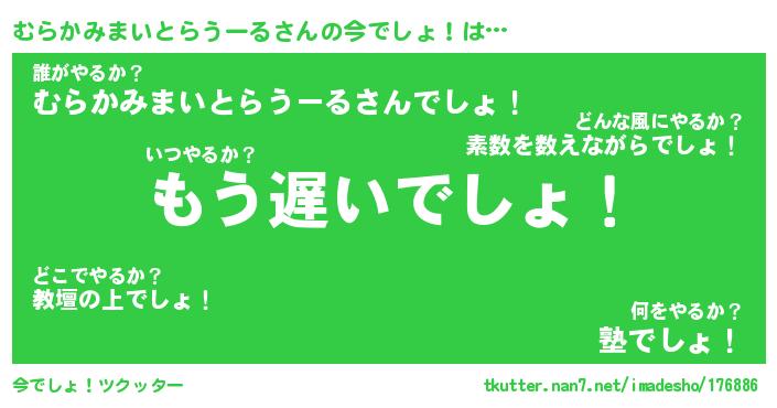 | 伝説のあだ名 | 『不死鳥のスナイパーむらかみまいとらうーる』 |