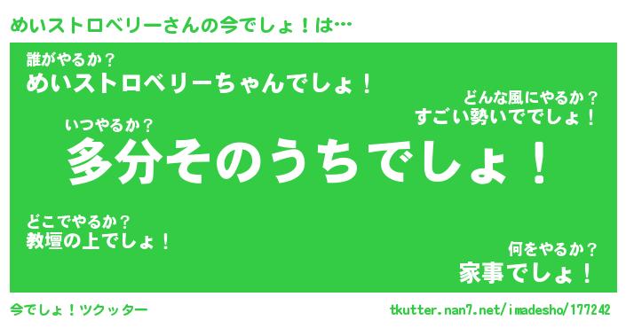 | 料理風あだ名 | 『節約★めいストロベリーと油揚げの玉子丼』 |
