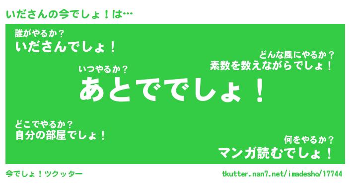 | 胡散臭い通販商品みたいなあだ名 | 『モテモテ間違いなしブレスレット…その名も「いだ」』 |