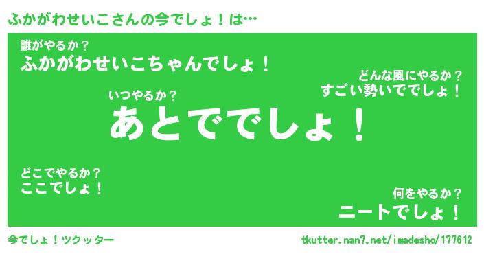 | 意味不明あだ名 | 『ペロリンふかがわせいこ』 |