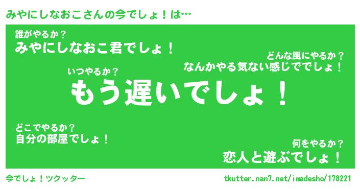 | ヘコむあだ名 | 『みやふぇ~』『豆乳』『みやを』 |