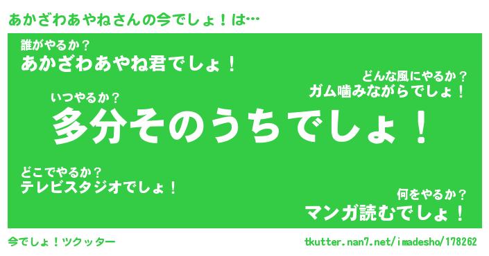 | 胡散臭い通販商品みたいなあだ名 | 『モテモテ間違いなし霊験あらたかなお札…その名も「あかざわあやね」』 |