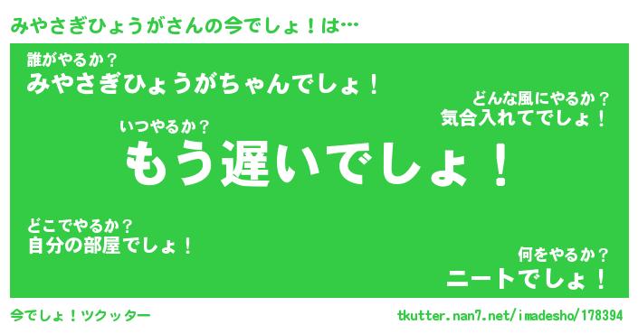 | 男性向けラノベタイトル風あだ名 | 『みやさぎひょうがの憂鬱』 |