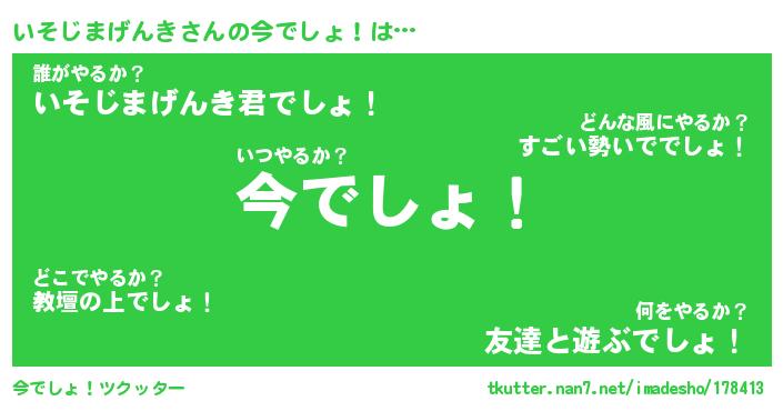 | 男性向けラノベタイトル風あだ名 | 『いそじまげんきの憂鬱』 |