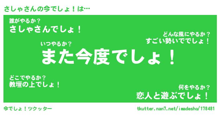 | 肩書あだ名 | 『さしゃ社長』『さしゃ総理大臣』 |