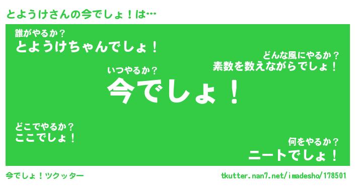 | 意味不明あだ名 | 『ペロリンとようけ』『永久保存とようけ』 |