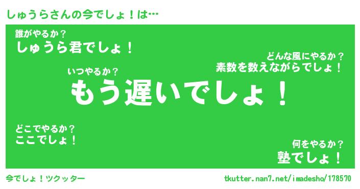 | 意味不明あだ名 | 『ペロリンしゅうら』『永久保存しゅうら』 |