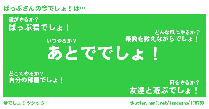 | 2回繰り返すあだ名 | 『ばっばっ』『ばばっっ』『いじいじ』 |