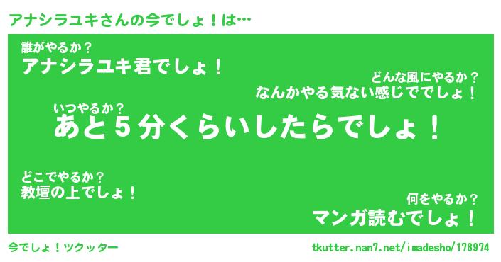 | ヘコむあだ名 | 『アナもー』『なまこ酢』『アナ太郎』 |