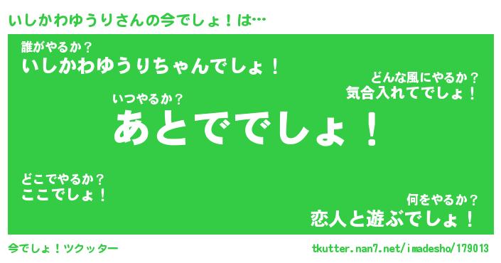 | 恥ずかしいあだ名 | 『プリティーいしかわゆうり』『いしちん』 |