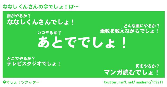| ヘコむあだ名 | 『ななもー』『牛乳』『なな太郎』 |