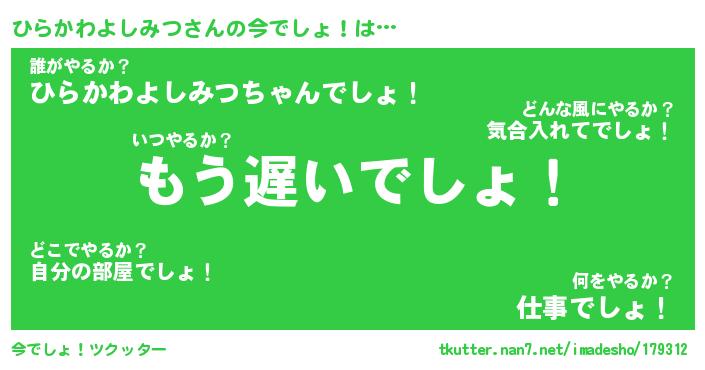 | 意味不明あだ名 | 『ペロリンひらかわよしみつ』 |