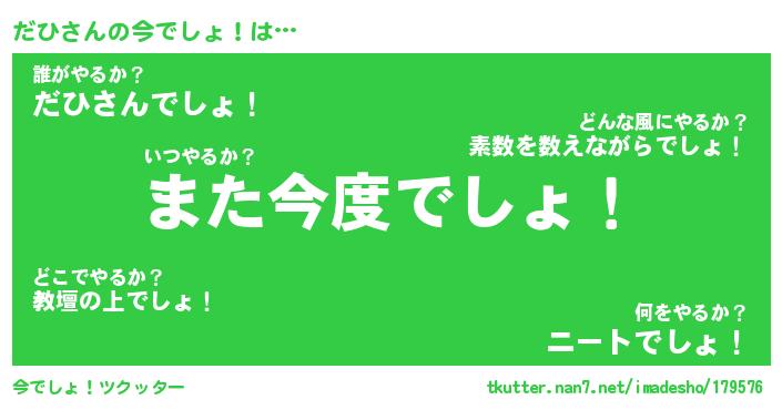 | 胡散臭い通販商品みたいなあだ名 | 『億万長者になれる霊験あらたかなお札…その名も「だひ」』 |