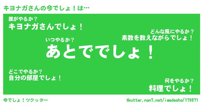 | 料理風あだ名 | 『節約★キヨナガと油揚げの玉子丼』 |