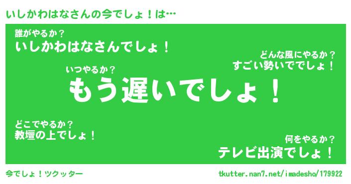| ピコ太郎風あだ名 | 『イコ二郎』『ピイ一郎』『イシ一郎』 |