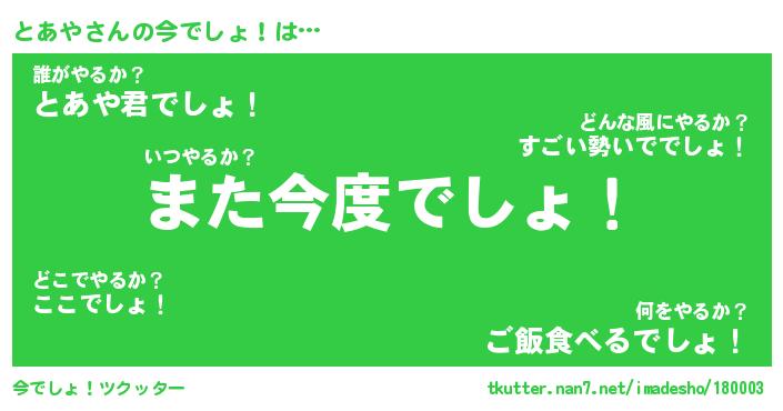 | ピコ太郎風あだ名 | 『トコ一郎』『ピト十郎』『トア三郎』 |