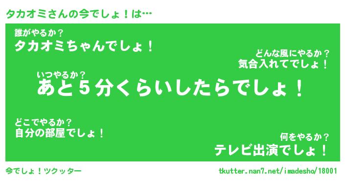| 肩書あだ名 | 『タカオミCEO』『タカオミ総理大臣』 |