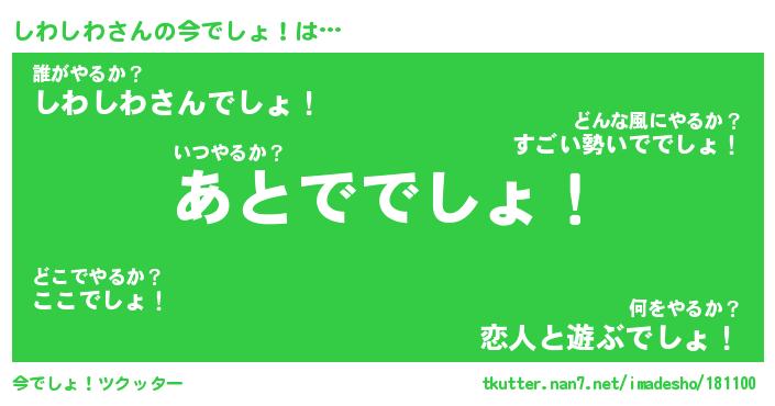 | 2回繰り返すあだ名 | 『しわしわ』『ししわわ』『ごろごろ』 |