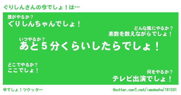 | 意味不明あだ名 | 『ペロリンぐりしん』『永久保存ぐりしん』 |