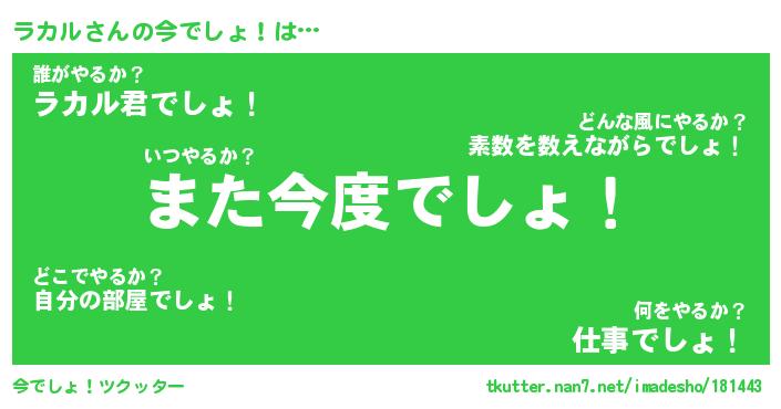 | 肩書あだ名 | 『ラカル社長』『ラカル総理大臣』 |
