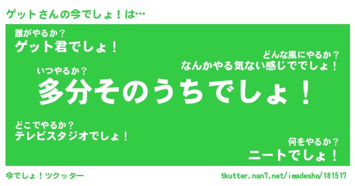 | 男性向けラノベタイトル風あだ名 | 『ゲットの憂鬱』 |