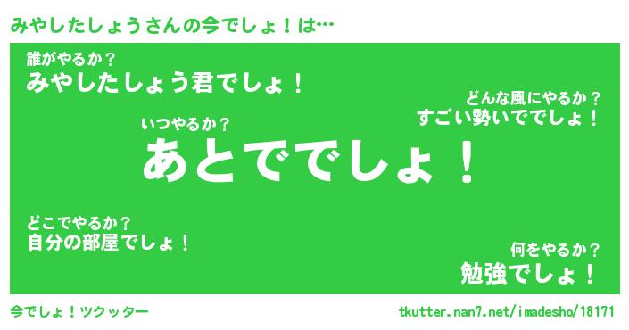 | ピコ太郎風あだ名 | 『ミコ史郎』『ピミ次郎』『ミヤ一郎』 |