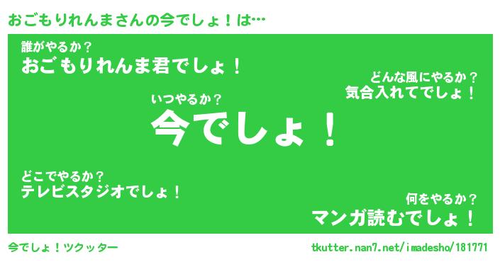 | 伝説のあだ名 | 『伝説の傭兵おごもりれんま』 |