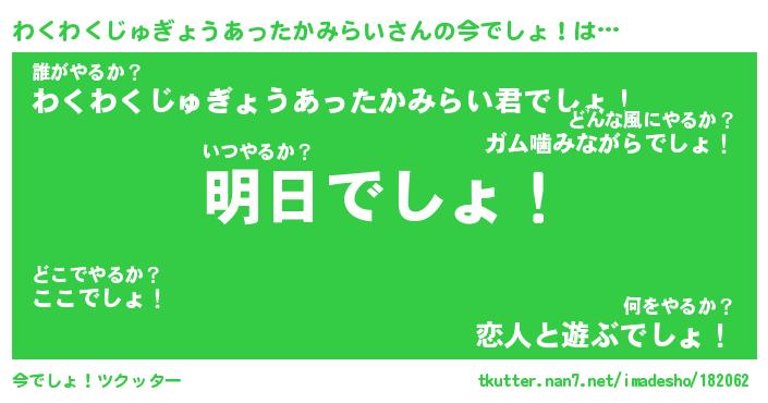 | 番長 | わくわくじゅぎょうあったかみらい、またの名を・・・!『眠たげなわくわくじゅぎょうあったかみらいっち』 |