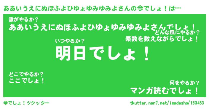 | 欧米人風あだ名 | 『マイケルああいうえにぬほふよひゆょゆみゆみよ』 |