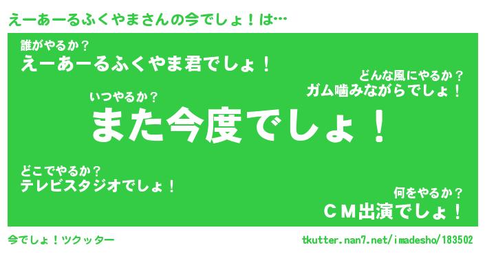 | 胡散臭い通販商品みたいなあだ名 | 『億万長者になれる霊験あらたかなお札…その名も「えーあーるふくやま」』 |