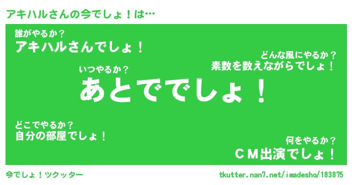| ヘコむあだ名 | 『アキもー』『つくし』『アキっぺ』 |
