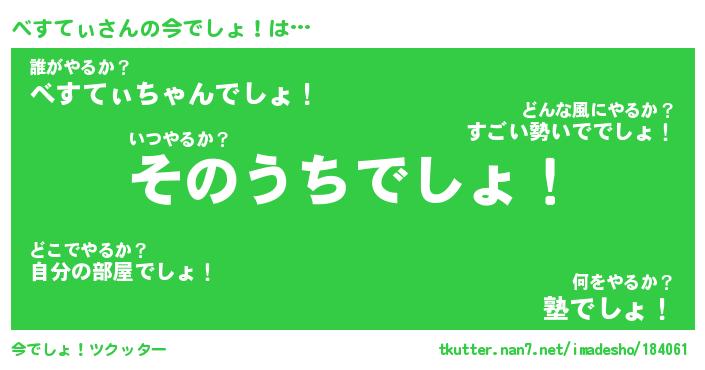 | ポケモン風あだ名 | 『ベスチュウ』『ベステダネ』 |