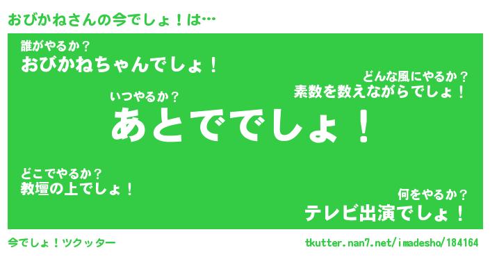 | 意味不明あだ名 | 『ペロリンおびかね』『永久保存おびかね』 |