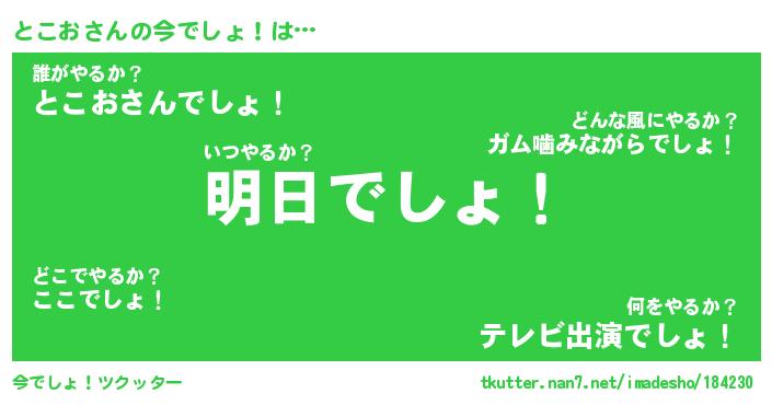 | 恥ずかしいあだ名 | 『プリティーとこお』『とこっちょ』 |