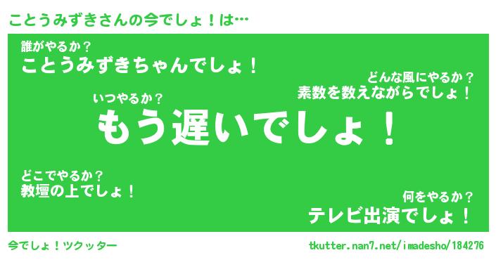 | 恥ずかしいあだ名 | 『プリティーことうみずき』『ことっちょ』 |