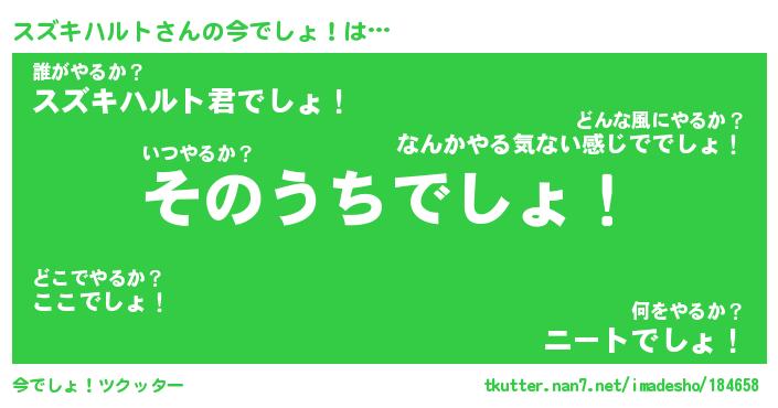 | 胡散臭い通販商品みたいなあだ名 | 『必ず成功する霊験あらたかなお札…その名も「スズキハルト」』 |