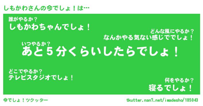 | 恥ずかしいあだ名 | 『プリティーしもかわ』『しもっちょ』 |